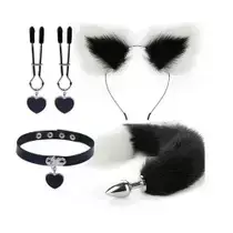 Kit - Rabo de Coelho com Tiara de Orelhas - Grampos para os seios em Metal e Laco - SI